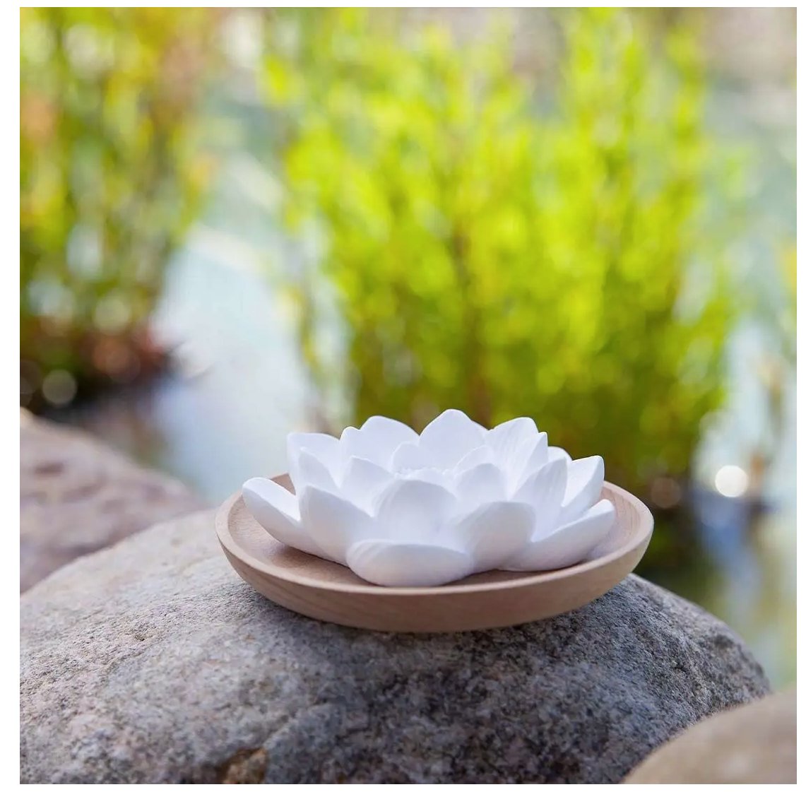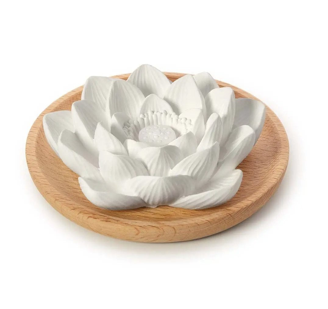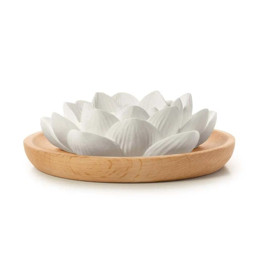 Inspiriert von der blühenden Magie der Natur, trägt der filigrane Duftstein Lotusblüte den Zauber des Neubeginns in unsere Lebensräume. Beduftet mit wenigen Tropfen des Lieblingsdufts schenkt uns die zarte Blüte ein wahrhaft blühendes Dufterlebnis und lädt uns zum sinnlichen Innehalten ein.