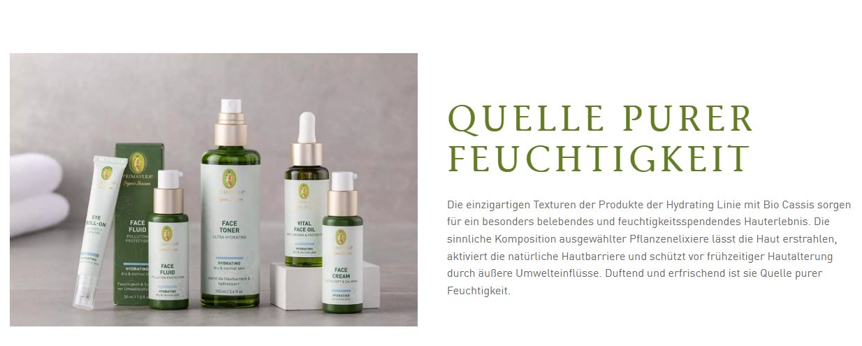 Pure Pflanzenkraft und wertvolle Öle machen das Vital Face Oil zum wertschätzenden Geschenk an unsere Haut. Das Gesichtsöl für normale bis trockene Haut ist wirkungsvoller Bestandteil unserer natürlichen Gesichtspflege. Dank ausgewählter Pflanzenessenzen in einer einzigartigen Komposition erhöht es intensiv die Feuchtigkeit der Haut und schenkt ihr mehr Elastizität und Vitalität. Die pure Wirkkraft von naturreinem Bio Cassissamenöl, Himbeersamenöl und Himalaya Rosenkirschöl lässt unseren Teint erstrahlen. Das PRIMAVERA Vital Face Oil - Moisturizing & Protective aktiviert unsere natürliche Hautbarriere, und dank seiner schnell einziehenden Textur sorgt es unmittelbar für ein vitales Erscheinungsbild.