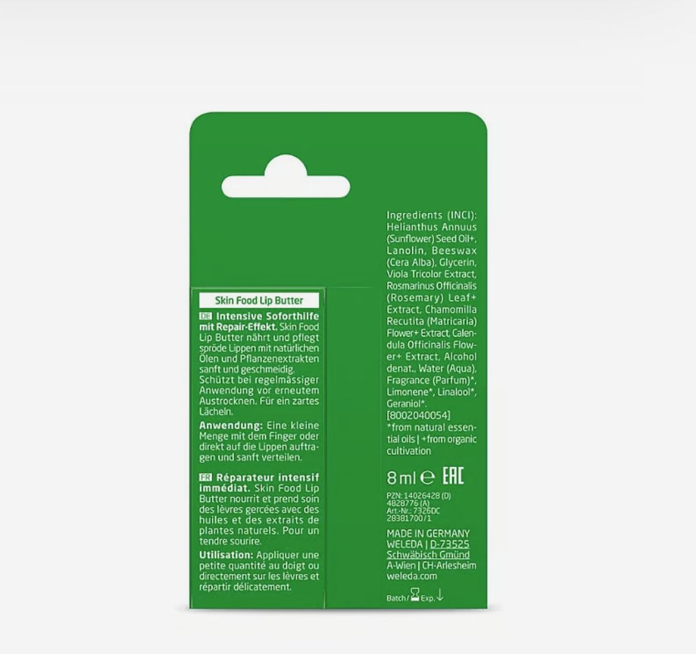 Angelehnt an die beliebte Hautpflege Skin Food gibt es eine Spezialpflege für die Lippen: Unser Skin Food Lip Butter stillt den Durst spröder Lippen & macht sie wieder geschmeidig zart!