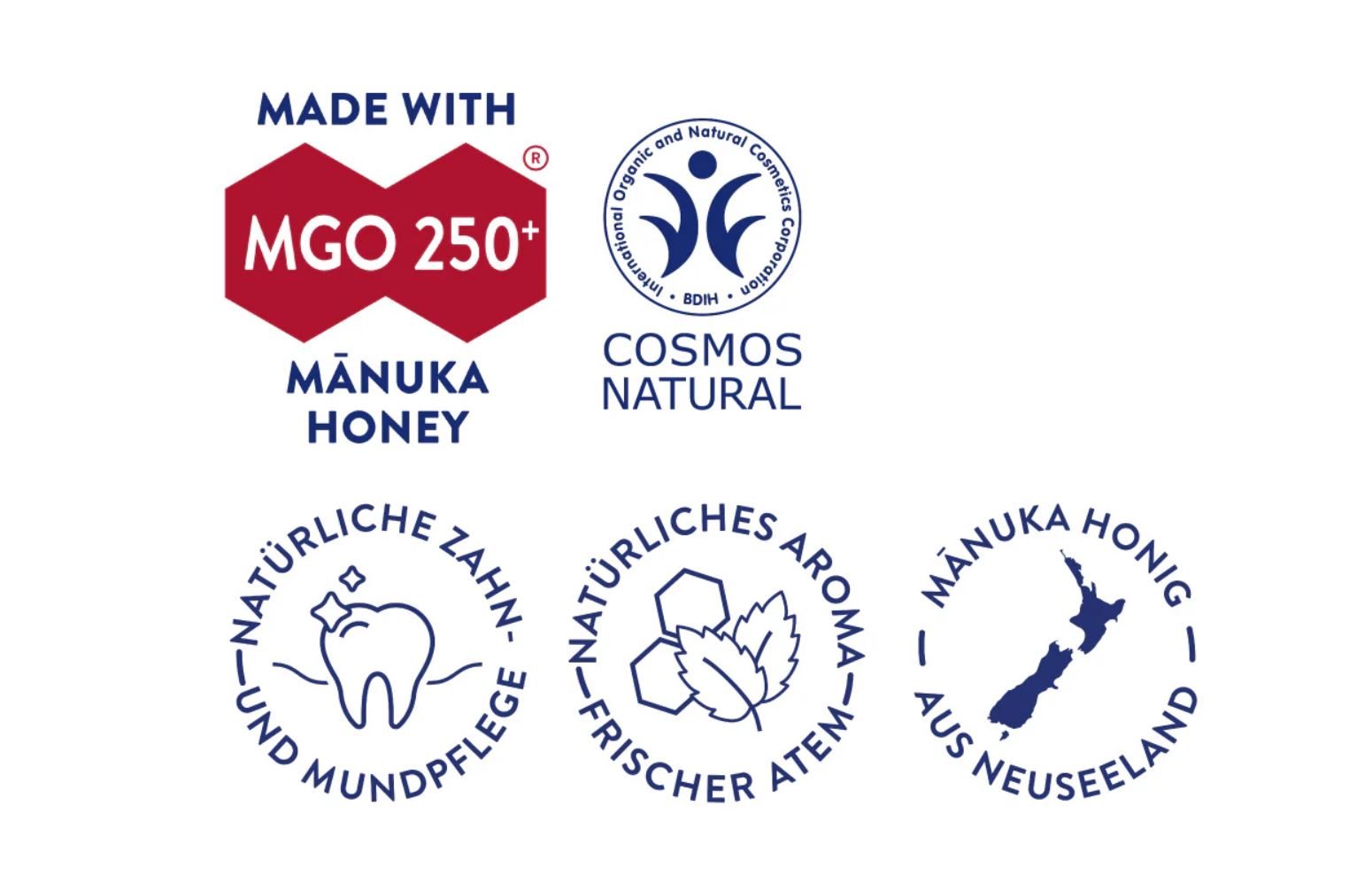高品質的 MGO250+ 麥盧卡蜂蜜有效對抗口腔中的細菌,從而支持牙齒和牙齦的健康。內含的螯蜂油進一步完善了這一成分組合。