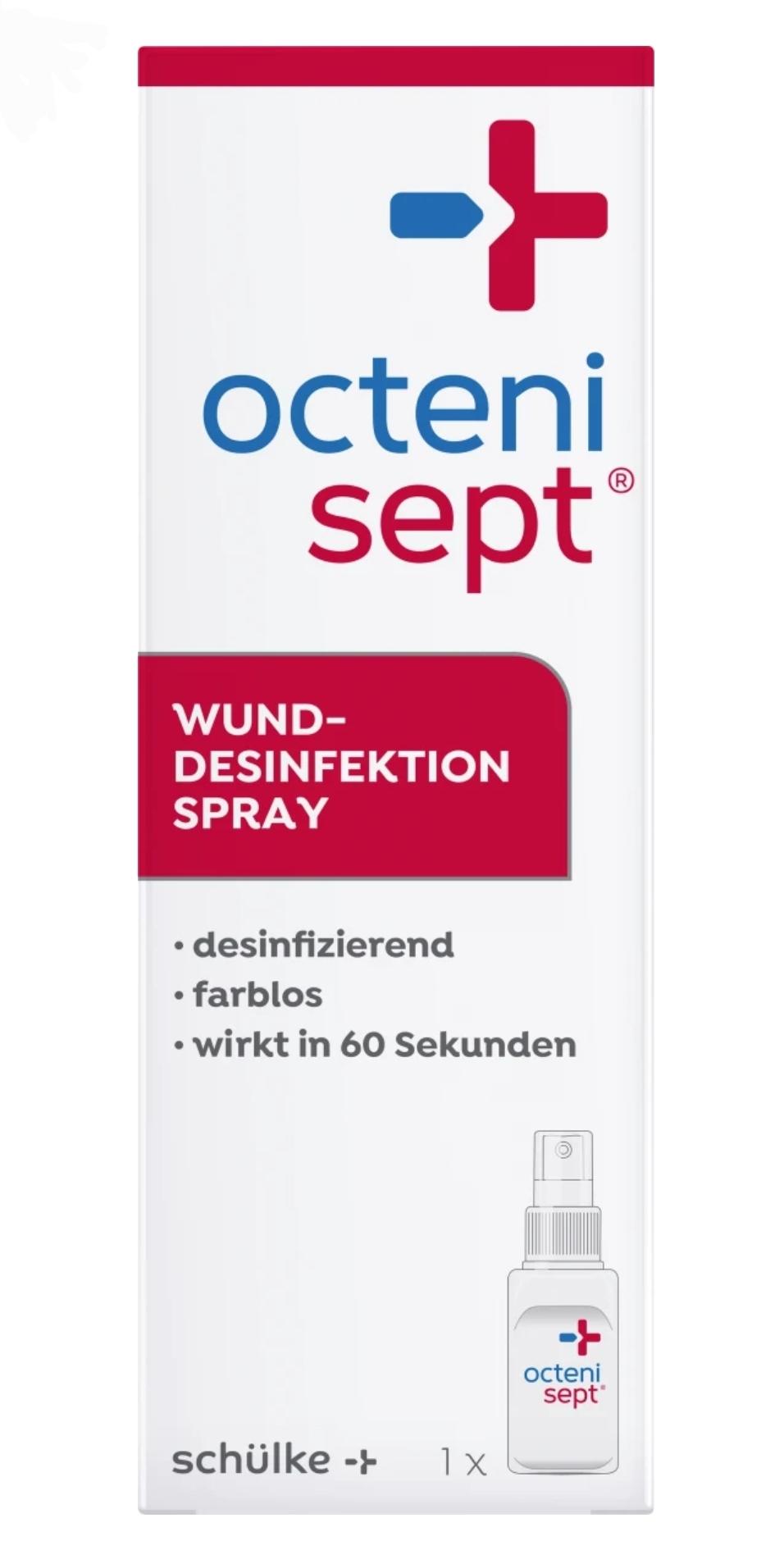 經臨床證明,奧替尼啶和苯氧乙醇兩種活性成分具有殺菌作用,可以殺死細菌。奧替尼啶可對抗真菌、某些病毒和細菌,而苯氧乙醇可加速其作用並擴大其作用範圍。由於這種成分,octenisept®傷口消毒噴霧可以快速無痛地對已經在皮膚傷口中定居的病原體進行消毒並防止發炎。順便一提:活性成分耐受性良好。