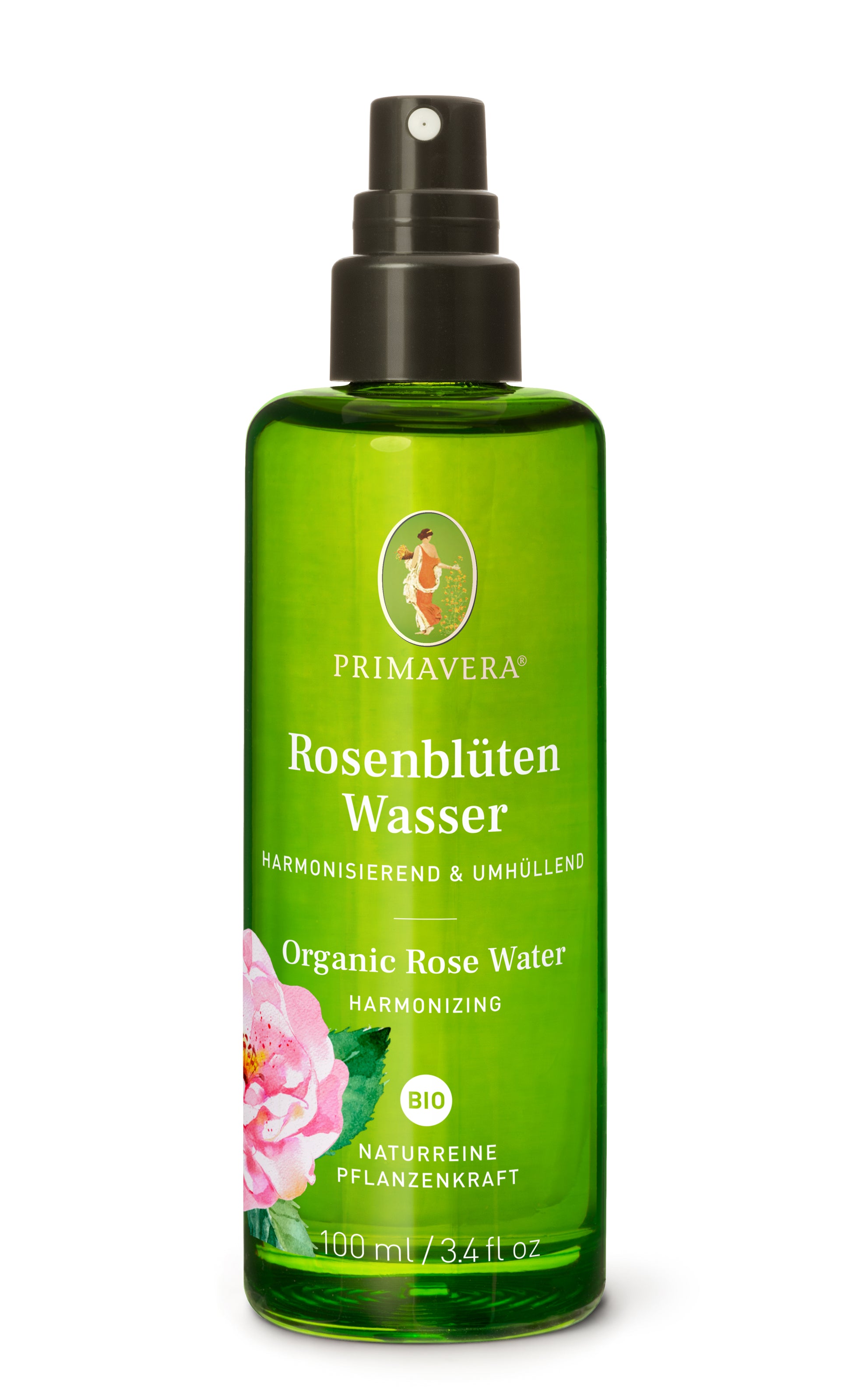 | Inhaltsstoffe | Rosenwasser* bio, Alkohol* bio,Citronellol** * bio = kontrolliert biologischer Anbau ** natürliche Bestandteile 100 % naturreiner ätherischer Öle |