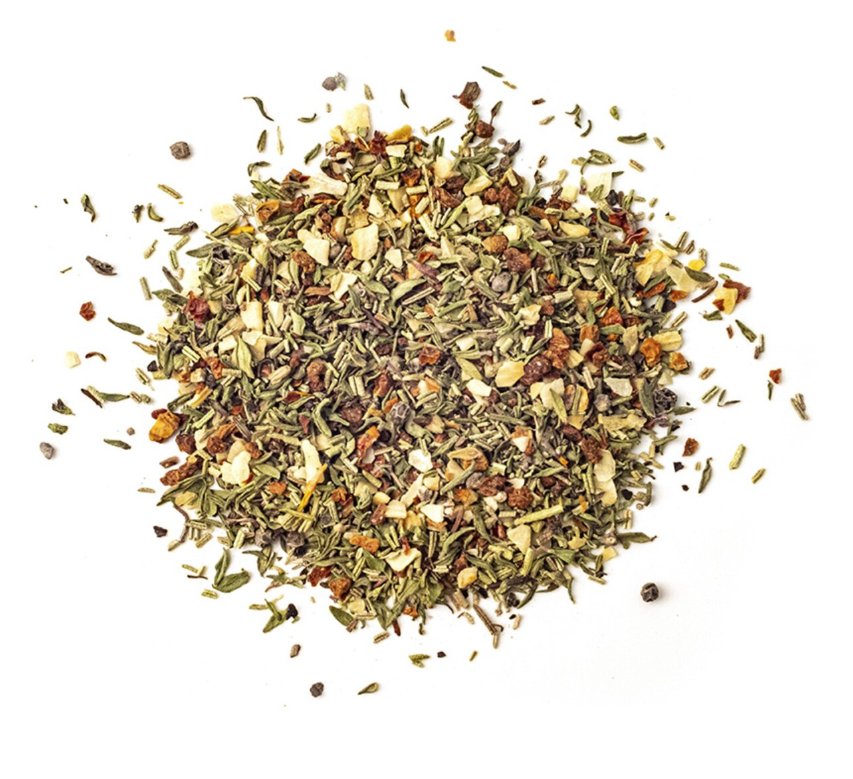 大蒜*、迷迭香*、百里香*、番茄片*(20%)、黑胡椒*、黃洋蔥碎*