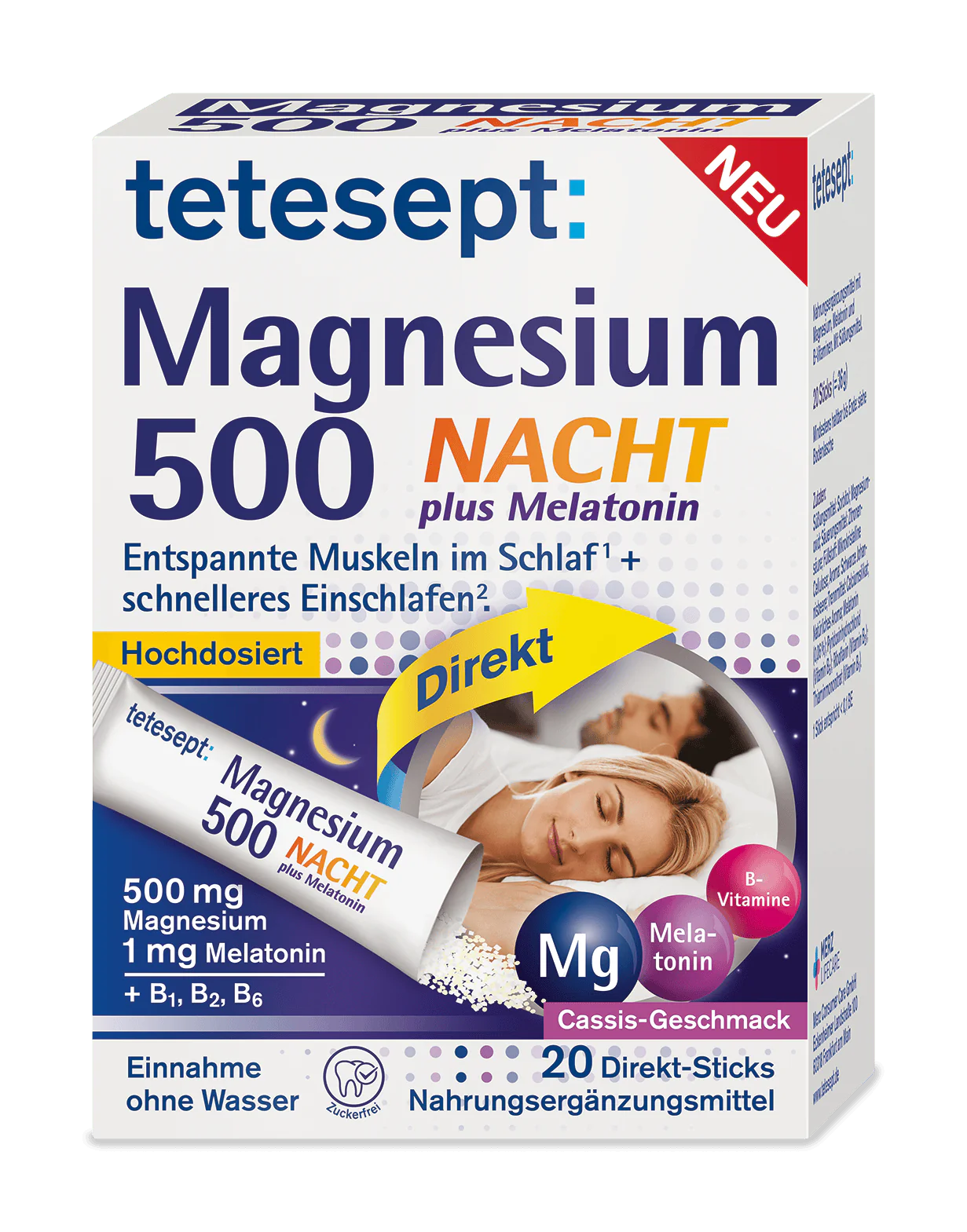 tetesept Magnesium 500 Night plus Melatonin Direct Sticks 含有