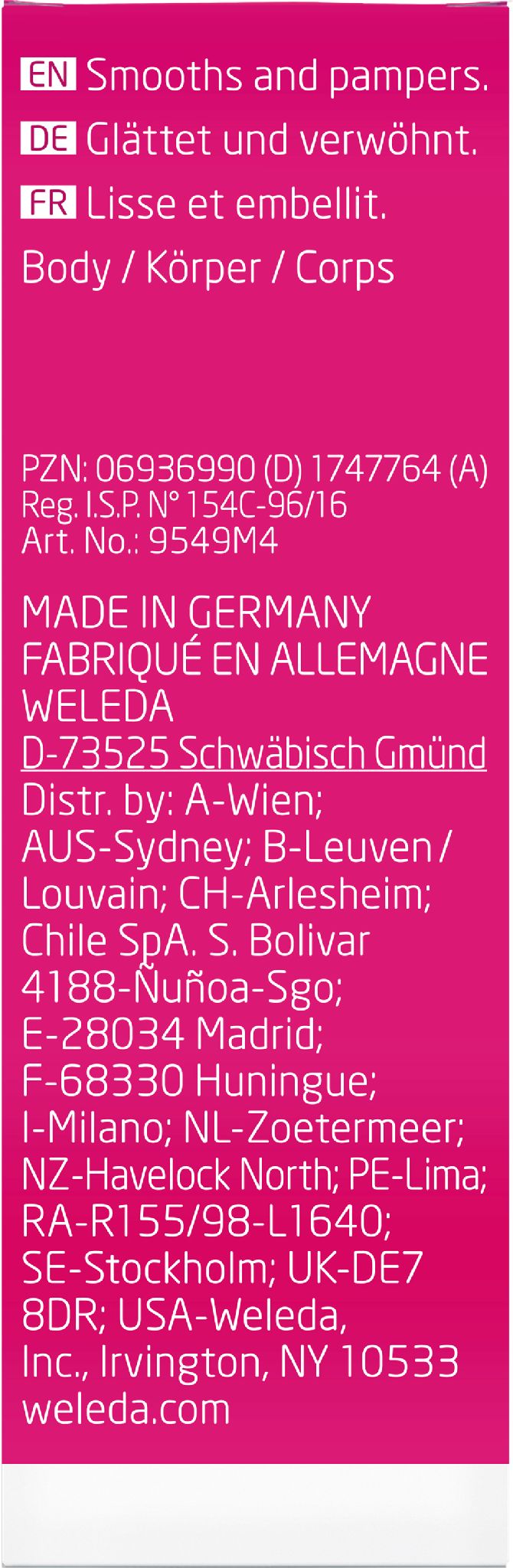 優質杏仁油、保濕荷荷巴油和特別優質的野生玫瑰果仁油(富含不飽和脂肪酸)可以呵護肌膚,使肌膚富有彈性、柔軟如天鵝絨。它們為身體提供精緻、透氣的保護,支持人體的自然升溫過程。玫瑰精油是從土耳其專為 Weleda 種植的有機大馬士革玫瑰中提取的,它為高品質的身體油帶來了淡淡的香味。